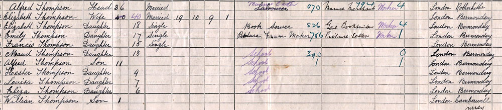 1911 census at 16 Prospect St, Rotherhithe