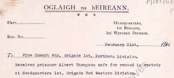 1922 Feb 21 He was to be taken to Sligo gaol. Headquarters 1st Brigade, 3rd Western Division