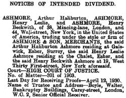 1951 Jan 29. Colonel Brenton Haliburton Ashmore, OBE, of The Old House, Brant Broughton, Lincolnshire.