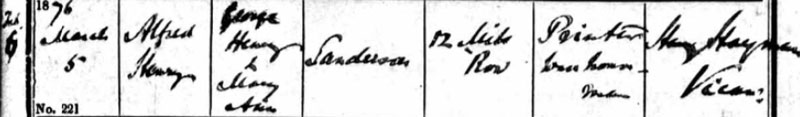 1876 Feb 7. Birth at 12 Mill Row, Kingsland Rd, Hackney/Shoreditch, Middlesex