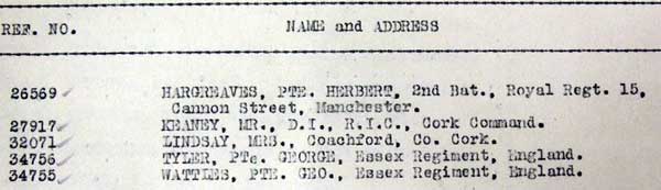 In 1922 after correspondence between the British and Irish governments, a list found in the Collins Papers in Dublin show