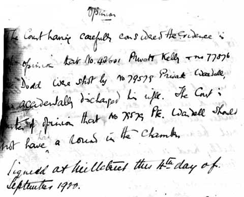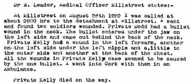 1920 Aug 26. Died at Cork. The Court of Inquiry minutes are available. Private Wardell accidentally shot Private Kelly and Private Dodd . Without more information I cannot determine whether Private Dodd died or not as a result of his wounds.