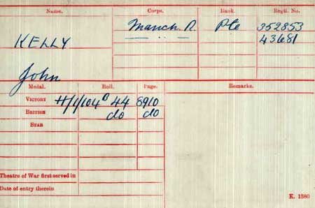 1919 Mar 15 Re-enlists in France. Mother given as Margaret Kelly of 45 Mansfield St, off St Anne's St, Liverpool.
