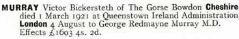 1917 May 1. The undermentioned Gentlemen Cadets, from the R. Mil. Coll., to be 2nd Lts. Cam'n Highrs. Victor Bickersteth Murray.