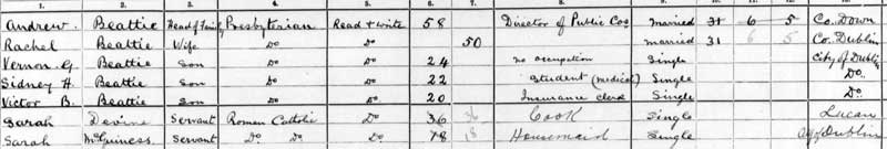 1911 census living at 46 in Fitzwilliam Square, West in Dublin