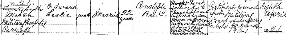 1921 Mar 23. Shot in Strokestown Ambush and died 26 Mar in hospital
