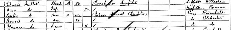 1901 census The family are at 47, Papillon Road, Colchester, he is under Leonard Mullett
