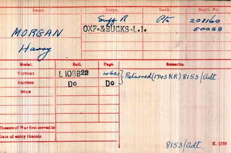 He enlists as Private Harry Morgan No. 5374617, a 31year old former Groom, from Colchester. He was unmarried, had served in the Labour Corps & the Suffolk Regiment during the First World War .