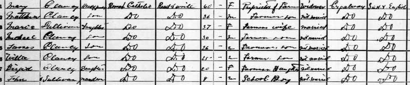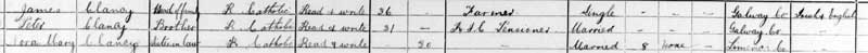1911 census with his brother James Clancy at Maghera More, Oughterard, Galway