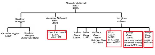 1921 Apr 7. Henry makes a House of Commons statement saying " Another man named Peter Clancy, pensioner from the Royal Irish Constabulary, was wounded by a stray bullet." And Lieut.-Commander Kenworthy asks " Is the right hon. Gentleman aware that the inhabitants of Clifden, who are not Sinn Feiners, deny the statement that any fire was opened, and state further that Clancy the ex-constable was put up against a wall, and shot? " Kenworthy did not get a government reply to this question