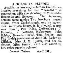 There were a number of arrests. Schley that's mentioned in the newspaper report escaped from the Curragh during the Truce.