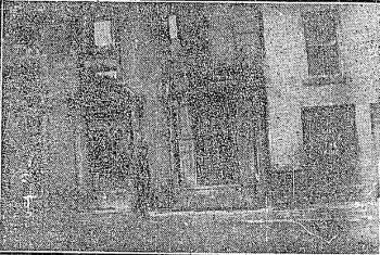 Grainy newspaper photo of McDonnells Hotel and of Lydons, after the burnings |
