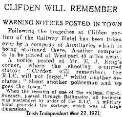 1921 Mar 22. A company of Auxiliaries took over part of the Railway Hotel (now Foyles). Two notices were posted