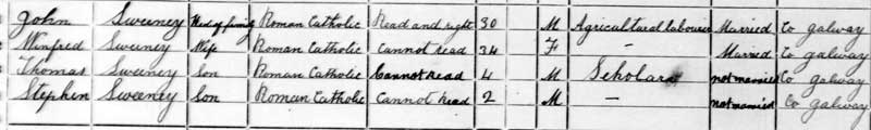 1896 Dec 25, born in Aughrim, Galway son of John and Mary Sweeney