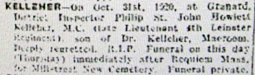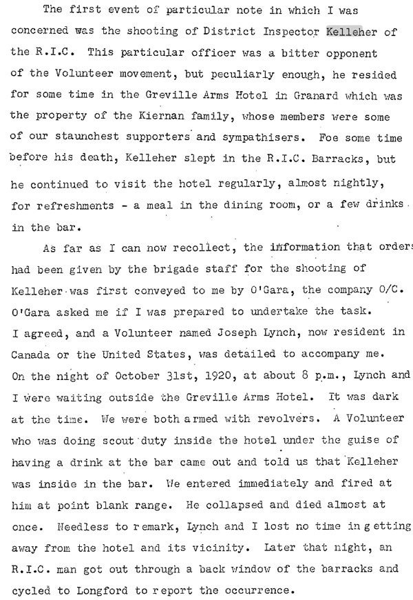 A few weeks later DI Kelleher's father, a GP in Macroom, carried out the autopsies on the Auxiliaries killed at Kilmichael