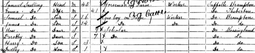 1901 census at Mr Mobbs Farm, Kessingland, Suffolk
