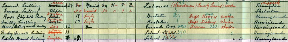 1911 census at Nr Alma Cottages, London Rd, Kessingland , Suffolk