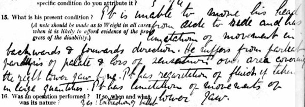 1921 Jan 15 Admitted to Military hospital Limerick. Bullet extracted from neck