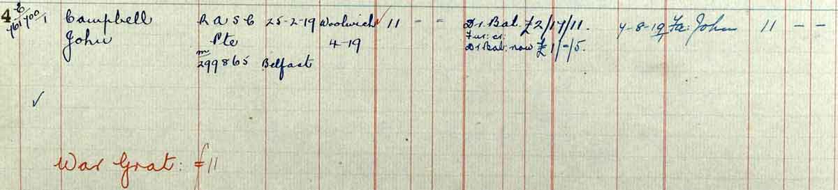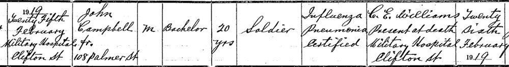 1919 Feb 25. Died at Belfast . Son of John Campbell, of 15, Mountain View St., Belfast.