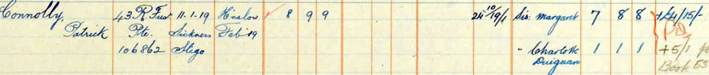 1894 Dec 5 Enlists in Artillery. His nok his father James at Knappagh Rd, Sligo. #7406