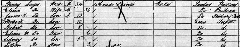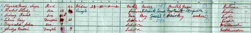 1911 census at 50 Woodlands Road Walthamstow