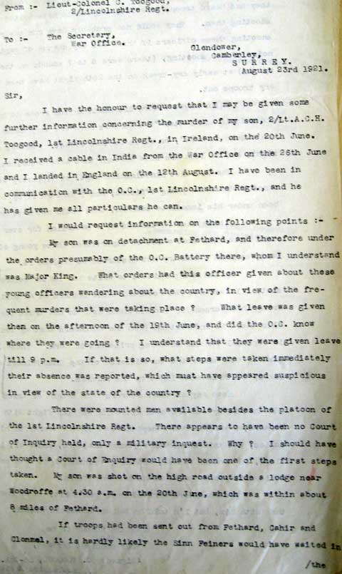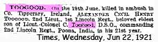 1921 Jun 20. Shot by IRA near Fethard, Tipperary