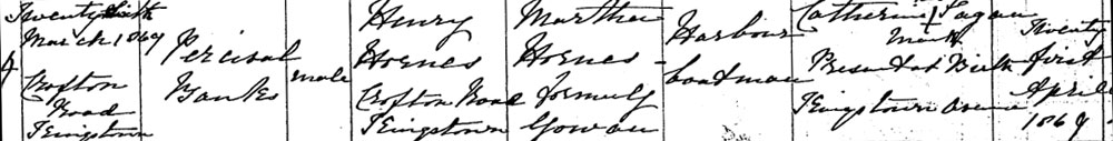 An Ancestry tree has him as Percival Banks Horner