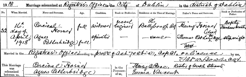 1918 Apr 16 Married his sisiter in Law Agnes Petherbridge