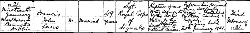 1921 Jan 19. Died in Dublin