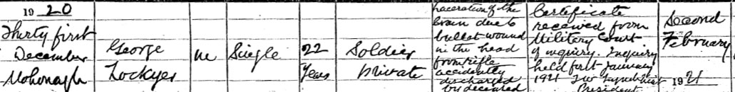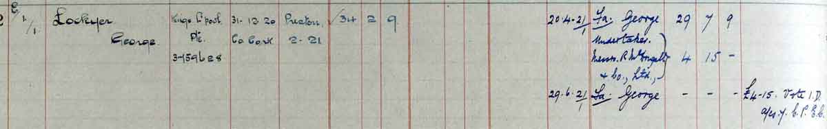1920 Dec 31. Died at Cork. Son of George Lockyer, of 9, St. Mary's Place, Walton, Liverpool.