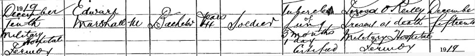 1919 Dec 10, Died at Military Hospital Fermoy Ireland