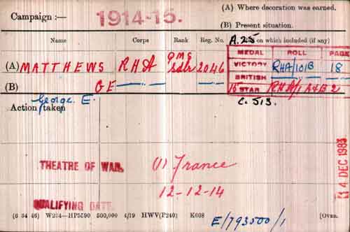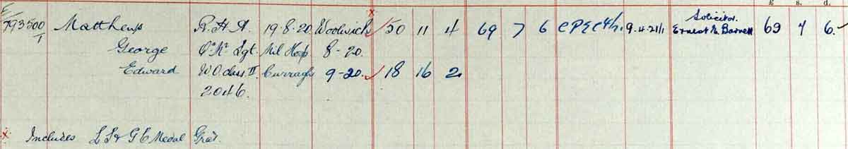 1920 Aug 19. Died at Mil Hosp Curragh . Son of George Matthews; husband of Annie Matthews, of London.