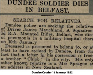 1922 Jan 10. Died of Pneumonia in Belfast