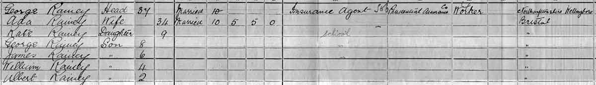 When George Frederick Rainey was born in 1903 in Somerset, his father, George, was 29 and his mother, Ada, was 27. He lived in Bristol, Gloucestershire on April 2, 1911. He had three brothers and one sister.