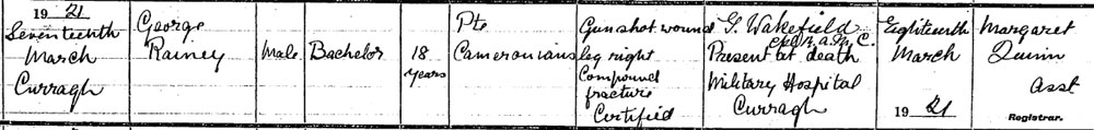 1921 Mar 17 , Died at Military Hospital Curragh. CWGC Gun Shot Wounds