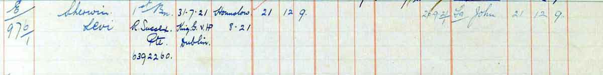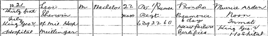 1921 Jul 31 Dies at King George V Hospital Dublin. Son of John and Emma Sherwin, of 11, Singleton.
