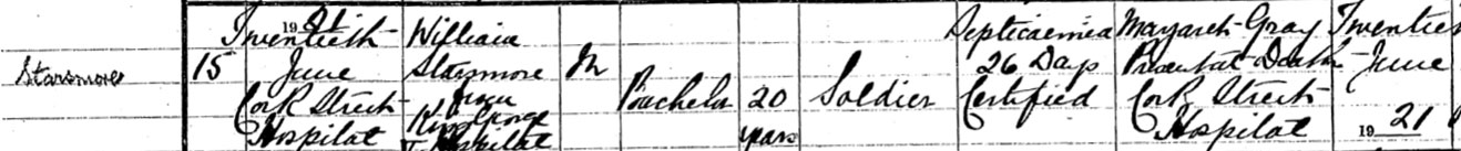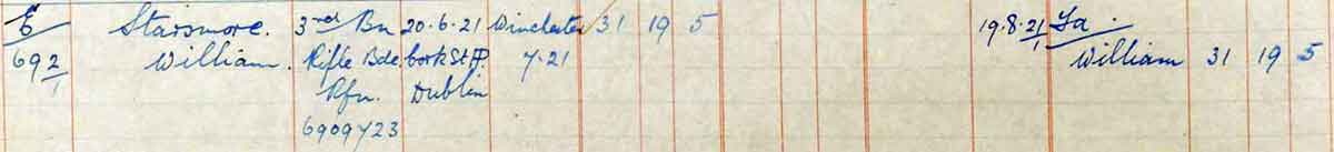 1921 Jun 20. Died Cork St, Hospital, Dublin. Son of William and Ellen Starsmore, of 46, Devon St., Saltley, Birmingham.