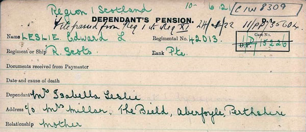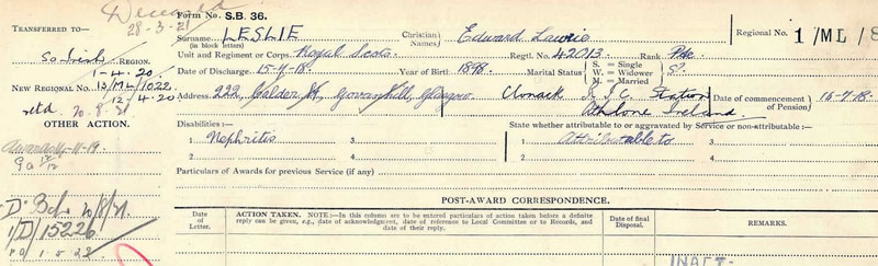 1918 Jul 15 Discharged from Royal Scots #42013. Sickness - Nephritis