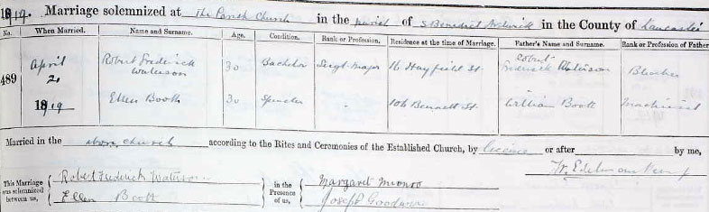 1919 Apr/Jun. Married Ellen Booth at Chorlton, Lancs