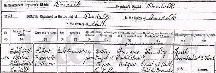 1921 Oct 26 Died Dundalk MIlitary Barracks